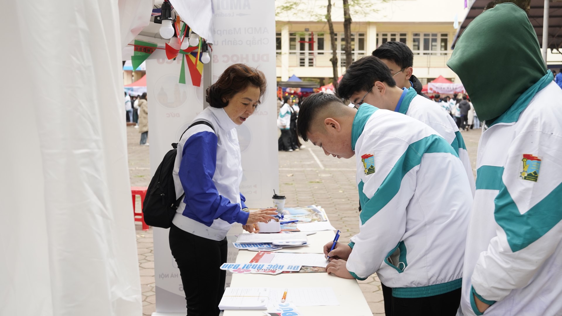 Gian hàng đặc biệt đến từ AMDI Manpower được bố trí các trò chơi vô cùng hấp dẫn và thú vị, nhằm tạo ra các cơ hội giao lưu, nhận quà cho các bạn THPT Lương Ngọc Quyến. Qua đây, các chuyên viên Phòng Tư vấn Du học - Định cư AMDI cũng đã trực tiếp tư vấn, giải đáp mọi thắc mắc về thông tin tuyển sinh, cơ hội học bổng tại các quốc gia như Canada, Đức, Úc, Nhật Bản, Hàn Quốc cho các bạn học sinh.